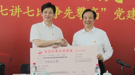 向海寧黨員關(guān)愛互助資金捐贈(zèng)100萬