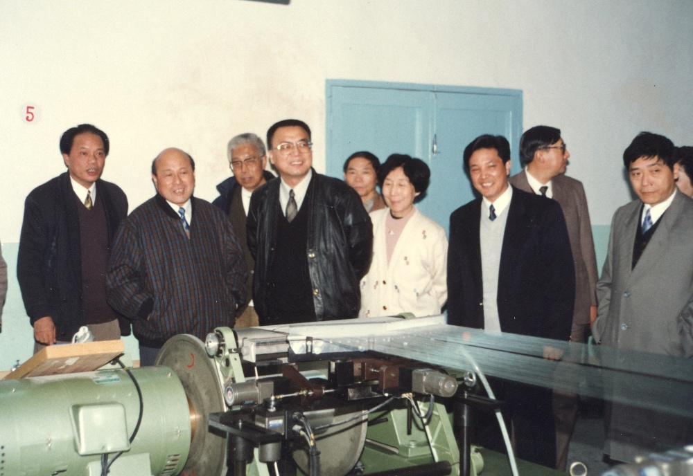 原中共浙江省委常委、杭州市委書(shū)記,時(shí)任中共嘉興市委書(shū)記王國(guó)平與省、市領(lǐng)導(dǎo)在浙江宏達(dá)經(jīng)編實(shí)業(yè)公司車(chē)間