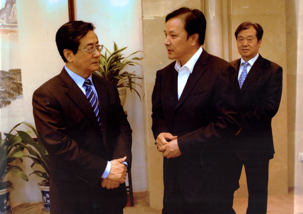 中央書記處書紀(時任中共浙江省委書記)趙洪祝在接見浙江省十位企業(yè)家時與沈國甫總經(jīng)理交談