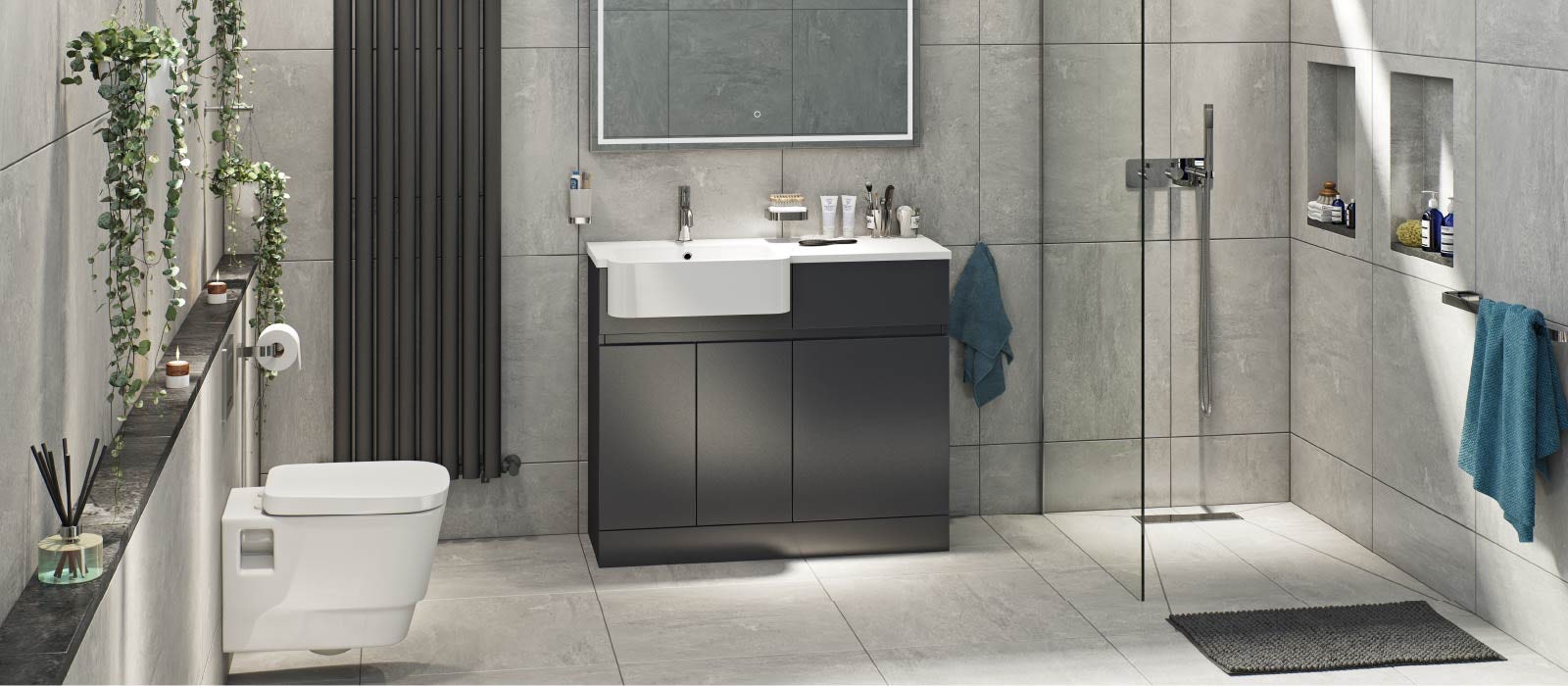 將浴室一分為二,干濕分開,就可保持沐浴之外的場地干燥衛生,維持浴室整體環境的整潔美觀。