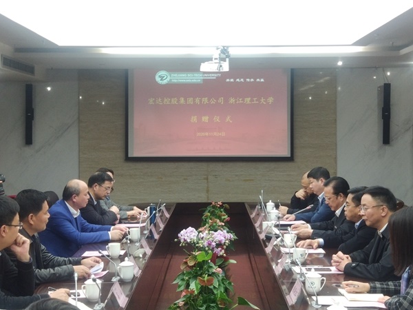 11月24日下午4點(diǎn),捐贈(zèng)儀式在浙江理工大學(xué)行政樓308會(huì)議室舉行。浙江省教育廳黨委副書記干武東、海寧市人民政府副市長楊文華、海寧市許村鎮(zhèn)人民政府黨委書記杜瑩池、宏達(dá)控股集團(tuán)、宏達(dá)高科董事長沈國甫、宏達(dá)控股集團(tuán)總經(jīng)理、高科副董事長沈珺等嘉賓,浙江理工大學(xué)校長陳文興、教育發(fā)展基金會(huì)理事長陳建勇以及相關(guān)職能部門負(fù)責(zé)人出席捐贈(zèng)儀式。浙江理工大學(xué)校黨委副書記周文龍主持儀式。