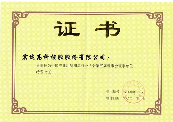 2021年10月20日,中國產(chǎn)業(yè)用紡織品行業(yè)協(xié)會(以下簡稱“中產(chǎn)協(xié)”)第五次會員代表大會暨協(xié)會成立20周年紀(jì)念活動在北京召開。會議圍繞換屆選舉、20周年紀(jì)念等主題,共話產(chǎn)業(yè)用紡織品行業(yè)發(fā)展方向。會上,宏達(dá)高科入選中國產(chǎn)業(yè)用紡織品協(xié)會第五屆理事會理事單位。
