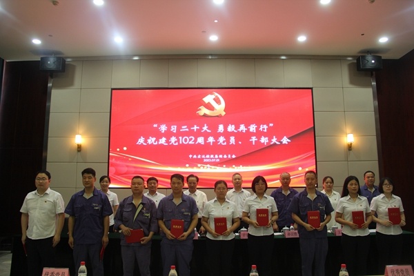 7月1日上午,中共宏達控股集團黨委在公司會議室召開“學習二十大,勇毅再前行”暨慶祝建黨102周年黨員、干部大會,集團黨委書記、董事長沈國甫率公司全體黨員、干部60余人參加會議。