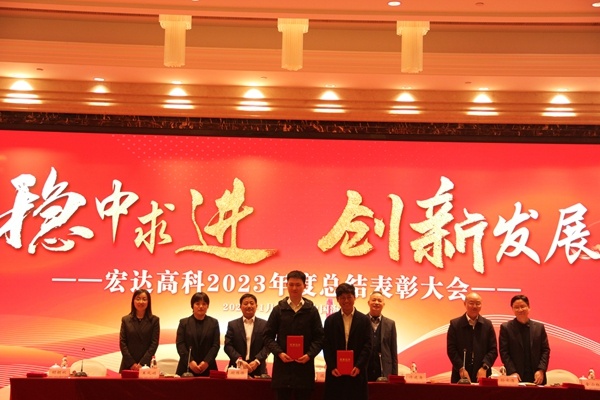 2024年1月31日,宏達高科控股股份有限公司2023年度總結表彰大會在錢江君廷酒店舉行,集團公司董事長兼“宏達高科”董事長沈國甫、集團公司總經理沈珺,“宏達高科”總經理許建舟、副總經理顧偉鋒等領導,公司管委會成員、全體職工及兄弟單位員工共410余人參加會議。