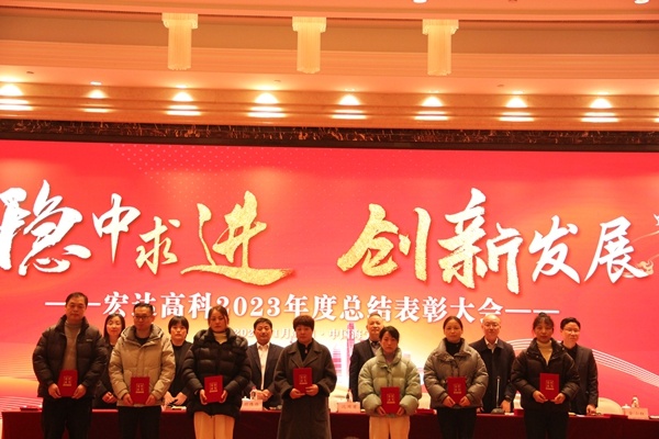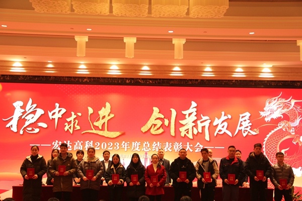 此次會議以“穩(wěn)中求進 創(chuàng)新發(fā)展”為主題。會議表彰了2023年度優(yōu)秀新人、優(yōu)秀基層員工、優(yōu)秀基層管理者、優(yōu)秀中層管理者,以及2023年度生產實操技能考核優(yōu)秀人員;獲表彰的員工代表分別發(fā)表了獲獎感言;營銷中心經理陳永達就2024年銷售工作作表態(tài)發(fā)言;副總經理金小紅就分管的技術、工藝工作作表態(tài)發(fā)言;副總經理孫云浩就分管的生產工作作表態(tài)發(fā)言。