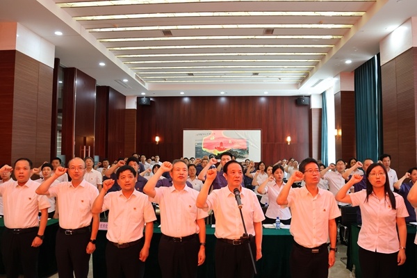 會上,全體黨員在沈國甫書記的領(lǐng)誓下,舉起右拳,面向黨旗莊嚴宣誓,重溫入黨誓詞;集團黨委委員顧偉鋒同志宣讀了集團黨委《關(guān)于開展“學規(guī)定、悟思想、爭先鋒”慶祝建黨104周年系列活動的通知》;集團黨委副書記許建舟同志宣讀了集團黨委《關(guān)于表彰優(yōu)秀共產(chǎn)黨員的決定》,表彰了過去一年涌現(xiàn)出的毛方飛等10名優(yōu)秀共產(chǎn)黨員;行政支部錢莉代表獲獎優(yōu)秀黨員發(fā)言。