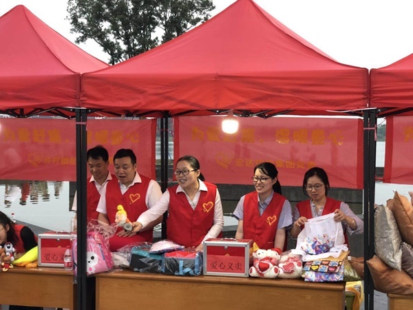 2019年5月31日傍晚,海寧市許村鎮(zhèn)許村社區(qū)聯(lián)合共建單位黨組織、愛心企業(yè)、社會組織等多方力量,在許村龍渡湖廣場開展了一場以“為愛趕集,溫暖童心”為主題的愛心公益主題活動,宏達(dá)控股集團(tuán)黨委作為共建單位,派出了10余名黨員參與活動。