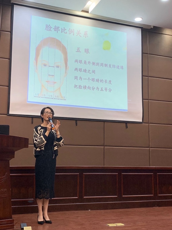 培訓課上,楊老師從女性的氣質養(yǎng)成、職業(yè)妝容技巧、服裝搭配、衣櫥整理、坐姿站姿禮儀等方面進行了細致的講解。還通過現場實踐,演示職業(yè)女性的化妝技巧,學員們紛紛上臺讓楊老師進行指導,楊老師耐心的解答以及細心的推薦讓大家親身體驗,融入其中,現場氣氛一片和諧。