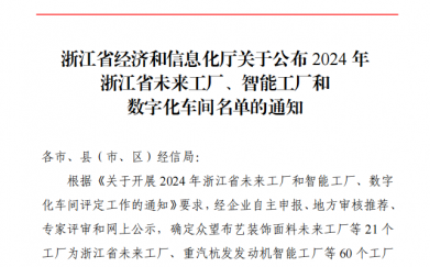 1月18日,浙江省經(jīng)濟和信息化廳對2024年浙江省未來工廠、智能工廠和數(shù)..