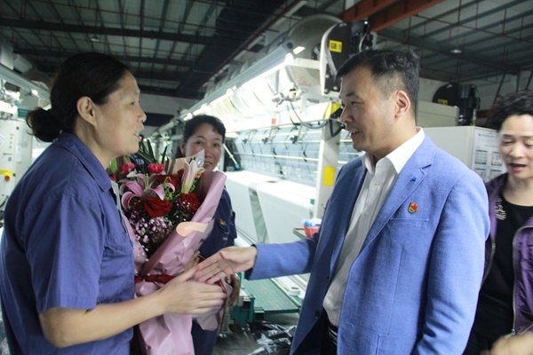 在宏達高科,朱書記來到經(jīng)編車間,慰問了全國勞動模范何娟鳳、嘉興市、海寧市勞動模范趙巧娟。何娟鳳和趙巧娟都是宏達高科的普通一線員工。十幾年來,她們在崗位上勤勤懇懇、苦練技能。其中趙巧娟曾被評為全國紡織工業(yè)技術(shù)能手,也是嘉興市最美職工。朱書記說,這樣的榮譽來之不易,并勉勵她們在崗位繼續(xù)努力,進一步弘揚工匠精神。